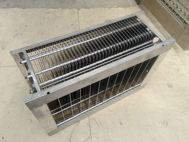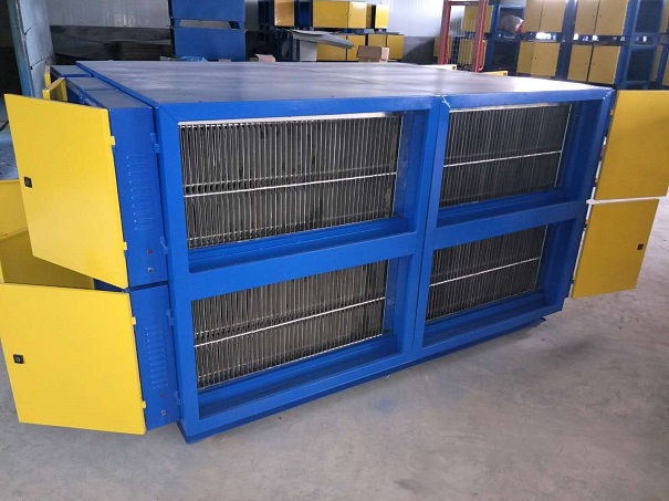 3、板式電場主要利用的是類似平板疊加的一個電離分離結構,板式電場分為電離區和吸附區,相互分離的裝置,油煙廢氣首先經過電離區進行電離,油煙變成帶正電荷的粒子,從而進入吸附區。